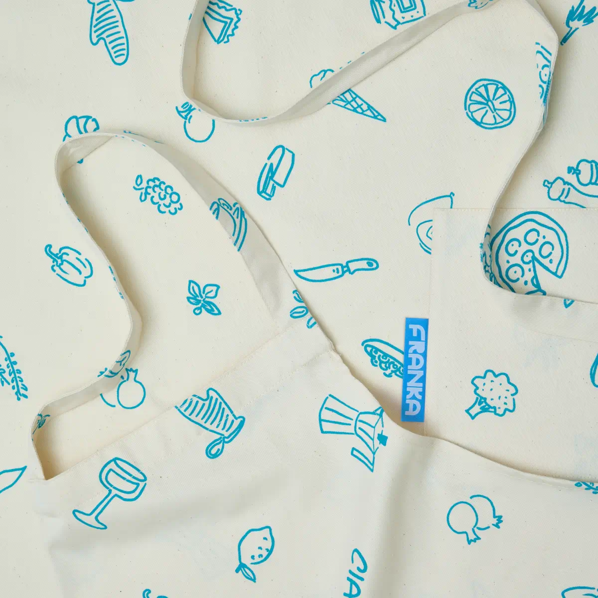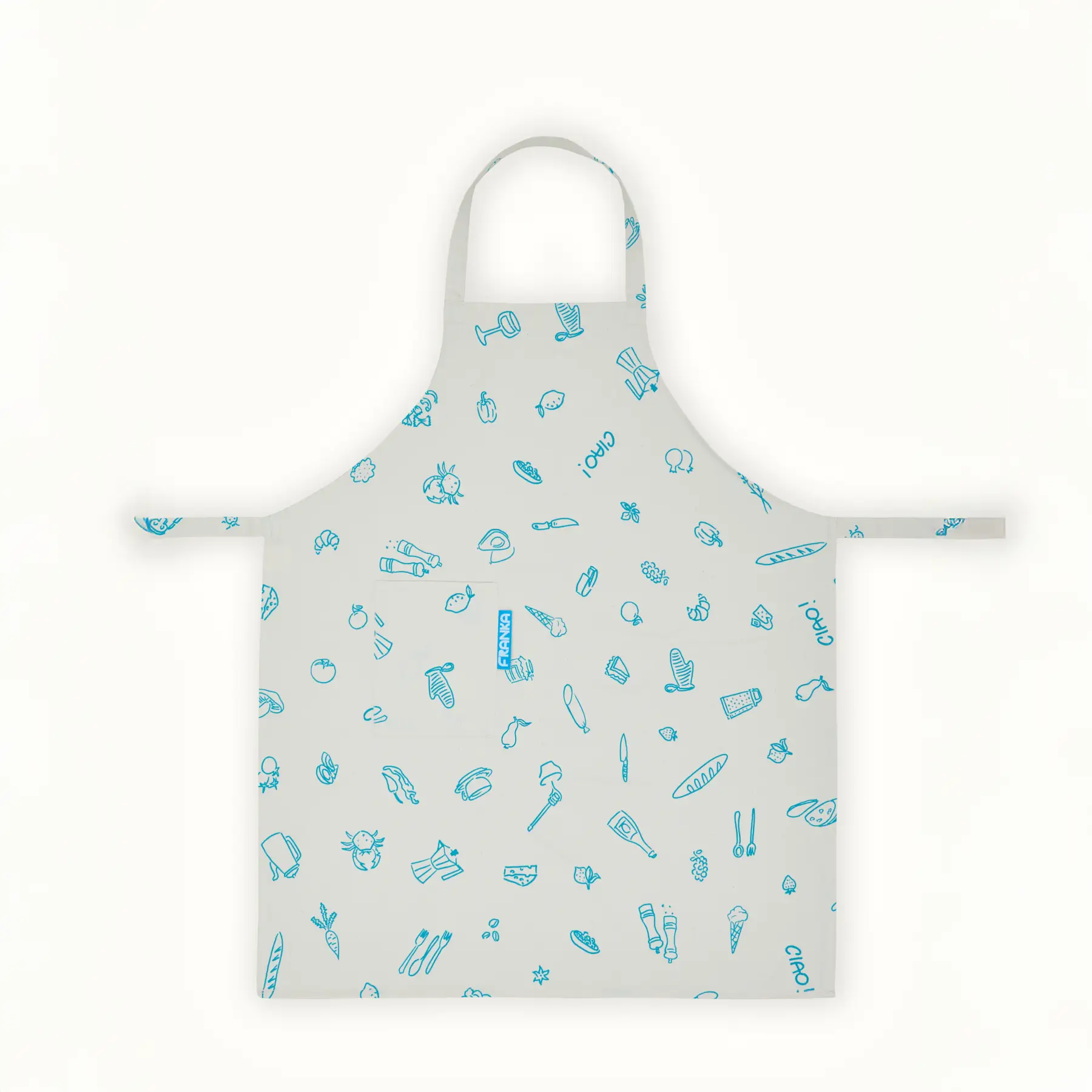 Fartuch kuchenny Maryna łączy funkcjonalność z radością gotowania. Wykonany z wysokogatunkowej bawełny, chroni ubranie, a błękitne ilustracje wprowadzają ciepły, przytulny klimat. Dzięki długim paskom i praktycznej kieszeni kulinarne przygody stają się jeszcze przyjemniejsze.